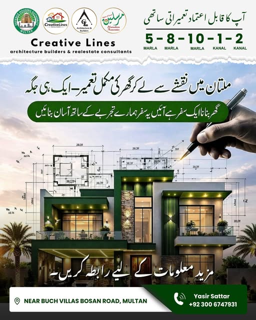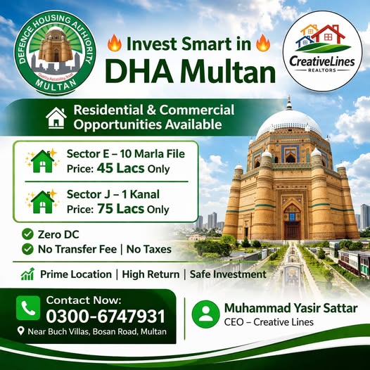 Creative Lines is a professional real estate agency in Multan, offering reliable services in property buying, selling, and leasing. They operate across key locations including DHA Multan, Wapda Town, Gulgasht Colony, and Bosan Road, providing clients with accurate property valuations, legal documentation support, and investment guidance.