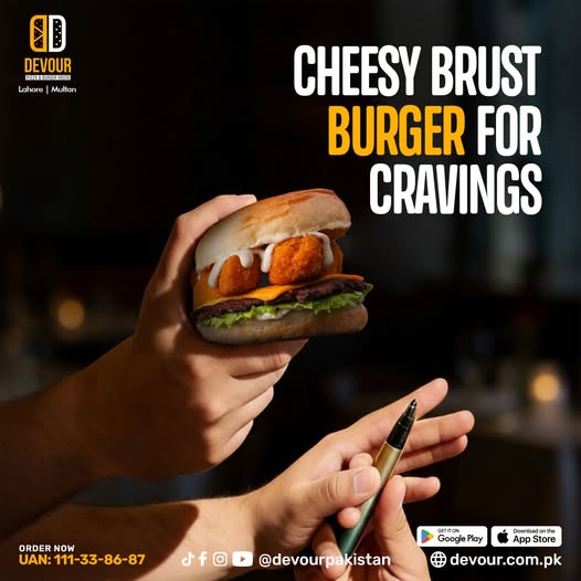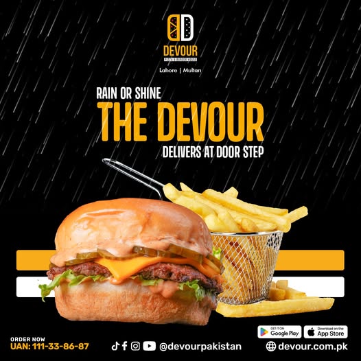 Devour Pizza & Burger House is a popular dining spot in Multan, offering a delicious selection of crispy pizzas, juicy burgers, and flavorful sides. Known for their generous toppings, cheesy crusts, and affordable prices, they have become a favorite choice for fast food lovers across the city.