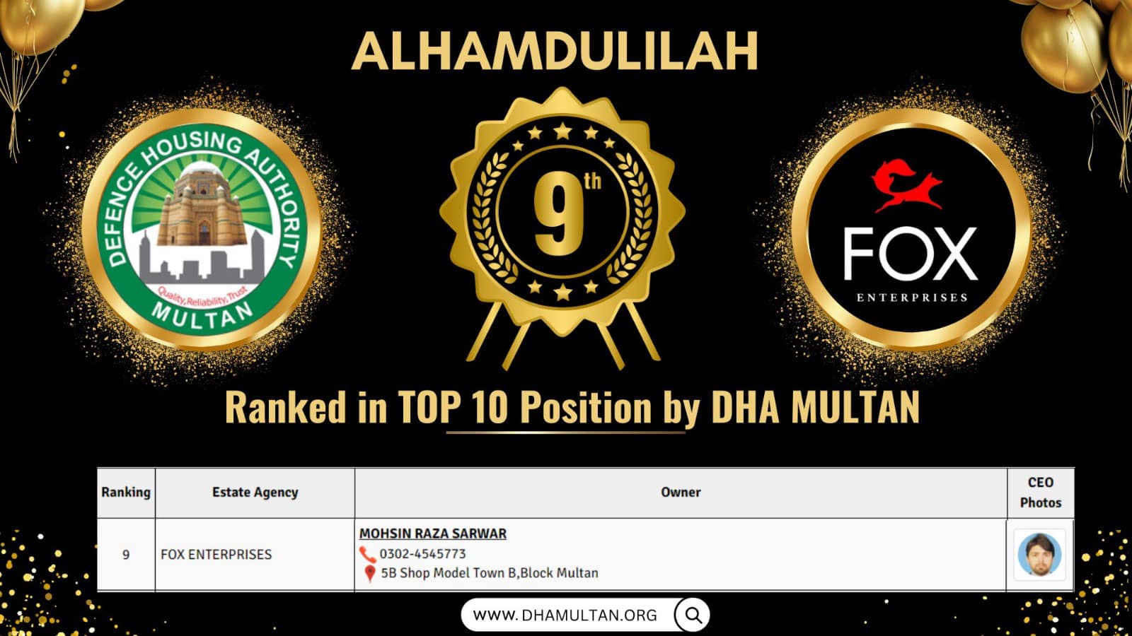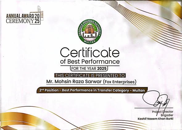 Fox Enterprises is a professional real estate agency in Multan, offering reliable services in property buying, selling, and leasing. They operate across key locations including DHA Multan, Wapda Town, Gulgasht Colony, and New Multan, providing clients with accurate property valuations, legal documentation support, and investment guidance.