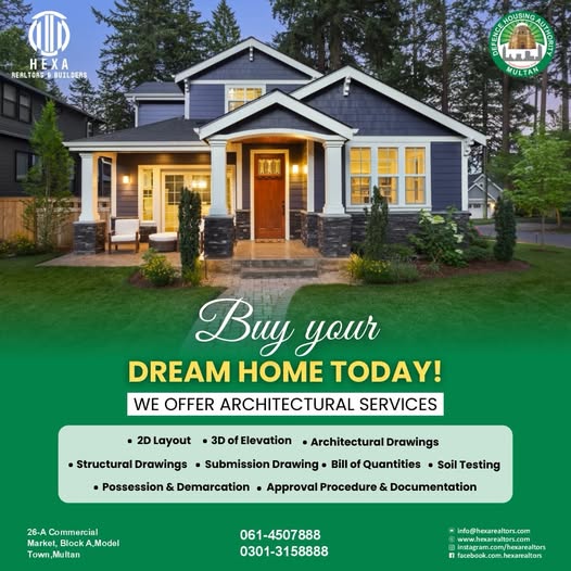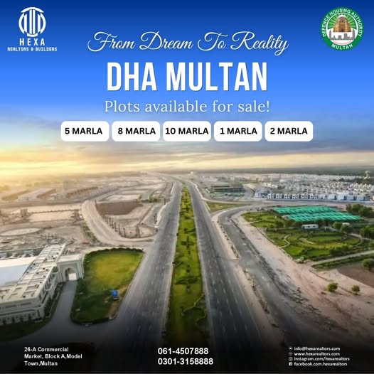 Hexa Realtors & Builders is a dynamic real estate agency in Multan, dedicated to providing comprehensive property solutions including buying, selling, leasing, and construction services. They have a strong presence in key residential and commercial sectors such as DHA Multan, Wapda Town, City Housing, and Bosan Road, ensuring clients get access to the best available options in the market.