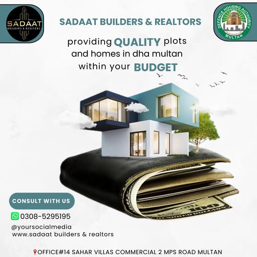 Sadaat Builders & Realtors is a well-known name in Multan's real estate industry, offering reliable services in property buying, selling, and construction. They operate across prime locations including DHA Multan, Wapda Town, Gulgasht Colony, and Shah Rukn-e-Alam Colony, providing clients with expert guidance on property valuation, legal documentation, and investment opportunities.